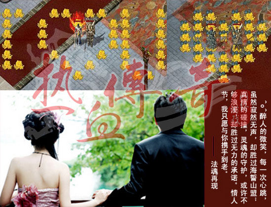 从在石墓认识你开始,我就知道,我的传奇之路,才刚刚开始.从我们一起练级开始,我就知道我们的缘分已经开始.从我们准备结婚开始,我就知道,我爱你的心将不再改变.从我们结婚以后,我们的爱似乎开始飞翔.